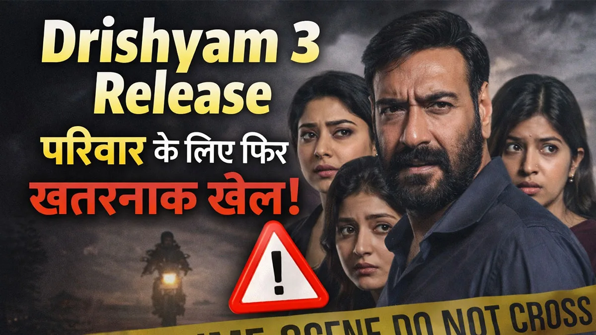 Drishyam 3: अजय देवगन के फैंस के लिए बड़ी खुशखबरी सामने आई है। मोस्ट अवेटेड मिस्ट्री-थ्रिलर फिल्म ‘Drishyam 3’ की रिलीज डेट का आधिकारिक ऐलान कर दिया गया है। मेकर्स ने सोमवार, 22 दिसंबर 2025 को घोषणा करते हुए बताया कि यह फिल्म 2 अक्टूबर 2026 को सिनेमाघरों में रिलीज होगी।