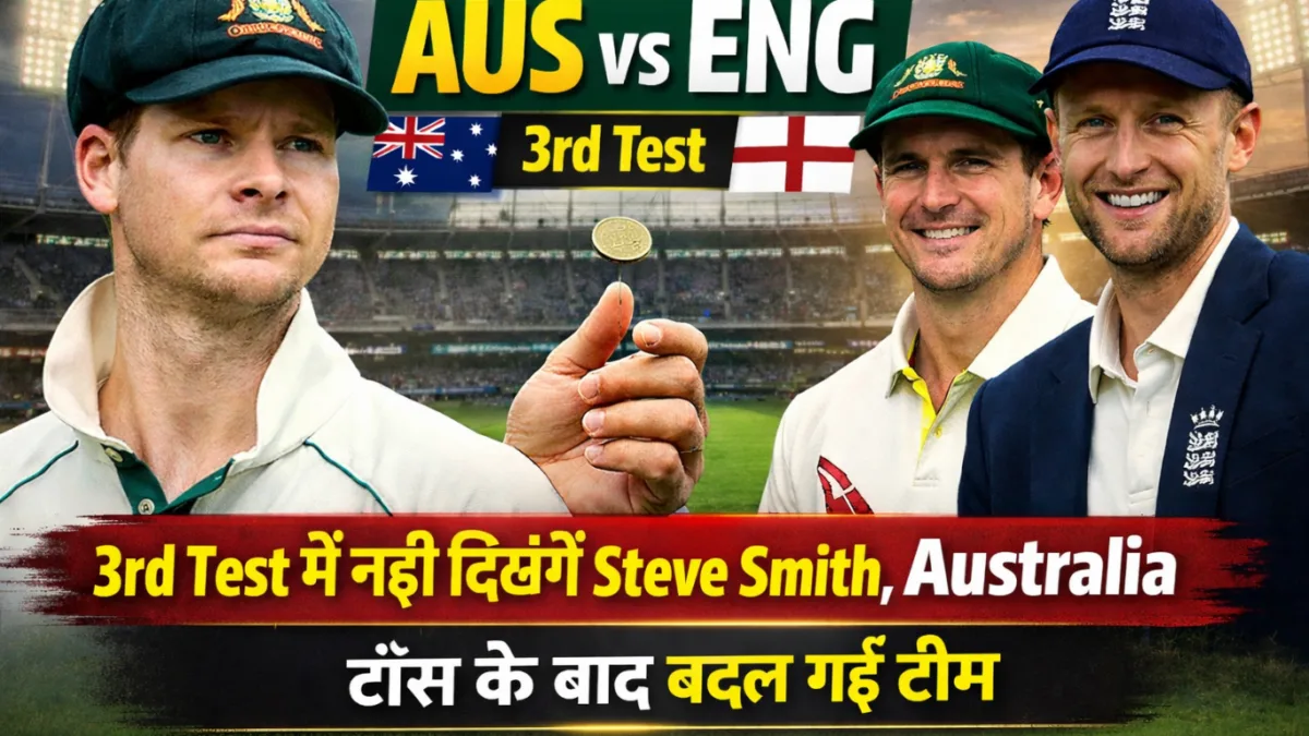 AUS vs Eng, 3rd Test: ऑस्ट्रेलिया और इंग्लैंड के बीच होने वाले तीसरे टेस्ट मैच की लेटेस्ट अपडेट के अनुसार एशेज के तीसरे टेस्ट में स्टीव स्मिथ अब नहीं खेलते नजर आएंगे। मैच शुरू होने के कुछ ही समय पहले ये फैसला लिया गया जो वाकई में काफी परेशान कर देने वाली है। स्टीव स्मिथ ऑस्ट्रेलिया के एक मजबूत प्लेयर है और उनके इस तरह से टीम से बाहर होना ऑस्ट्रेलिया के लिए एक बड़ा झटका है। आखिर ऐसा क्या हुआ कि उन्हें प्लेईंग 11 से बाहर कर दिया गया?