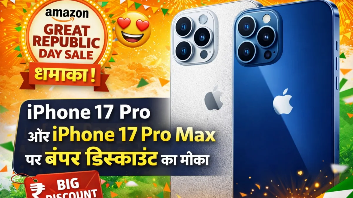 Amazon Great Republic Day Sale: देश की सबसे बड़ी ऑनलाइन सेल में से एक Amazon Great Republic Day Sale एक बार फिर टेक लवर्स के लिए बड़ी खुशखबरी लेकर आई है। अगर आप नया iPhone लेने का सपना देख रहे हैं, तो यह सेल आपके लिए किसी गोल्डन चांस से कम नहीं है। इस बार चर्चा में हैं iPhone 17 Pro और iPhone 17 Pro Max, जिन पर शानदार ऑफर्स और भारी छूट मिलने की बात सामने आ रही है।