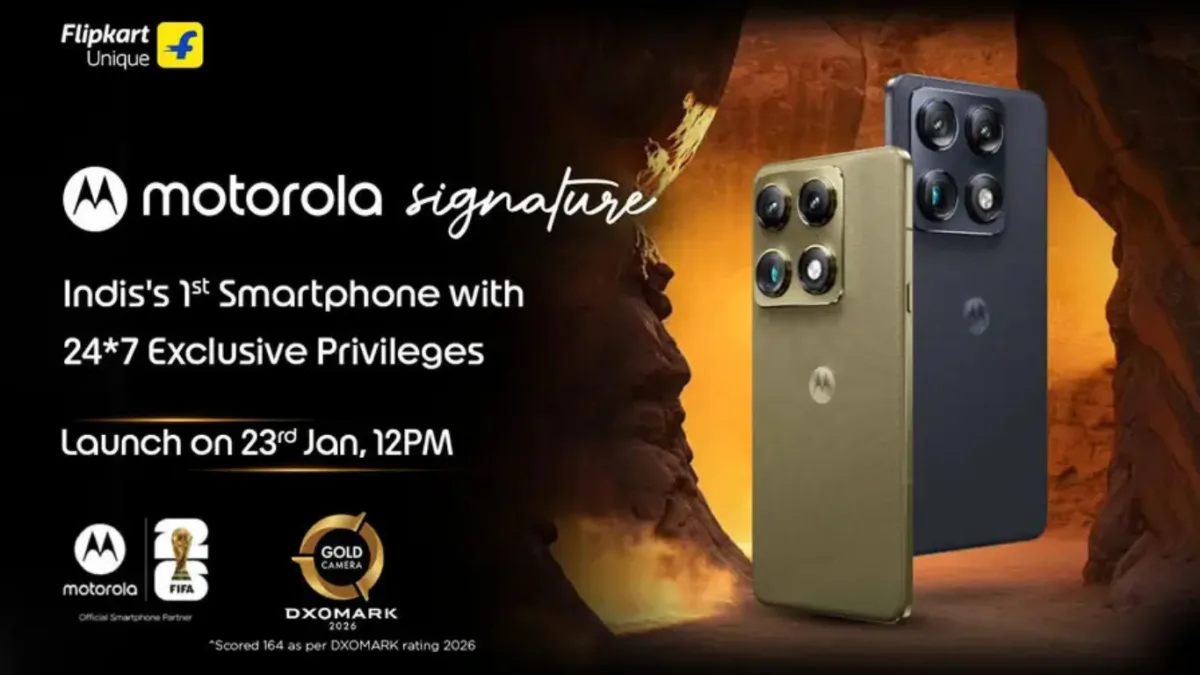 Motorola की तरफ से आधिकारिक रूप से पुष्टि कर दी है कि Motorola Signature 23 जनवरी 2026 को भारत में लॉन्च किया जाएगा। लॉन्च इवेंट दोपहर 12 बजे IST पर होने की उम्मीद है और फोन को Flipkart, Motorola.in और ऑफलाइन स्टोर्स के ज़रिये बेचा जाएगा। मोटोरोला का ये फोन CES 2026 में पहले ही ग्लोबल मार्केट में पेश हो चुका है और अब उसकी भारत वर्ज़न की एंट्री होने वाली है, जिससे भारत के प्रीमियम स्मार्टफोन खरीददारों को लेटेस्ट टेक्नोलॉजी मिलेगा।